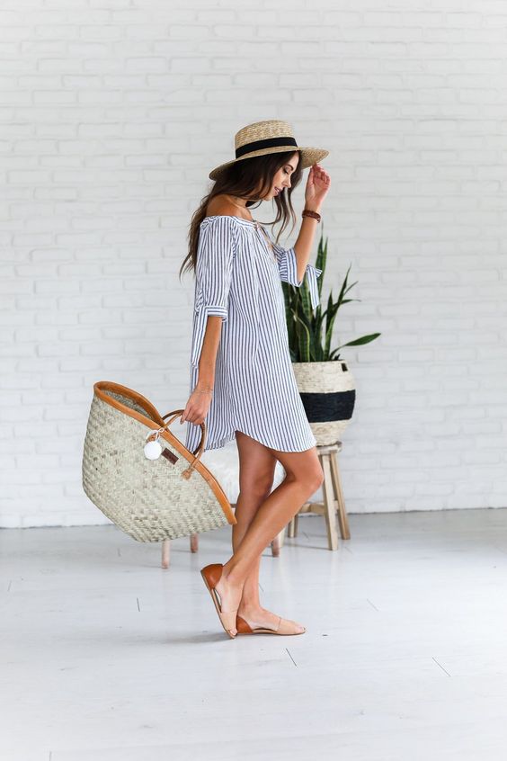 A wide-brimmed straw hat not only provides shade but also adds a stylish touch to your beach ensemble. Choose a floppy or boater-style hat to complete your beach look.