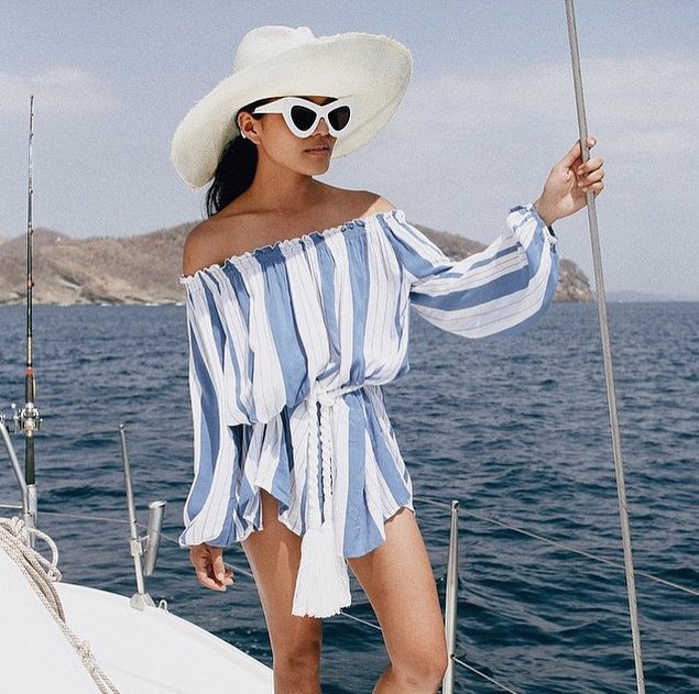 Our favorite style bloggers’ glamorous vacations are made all the more photogenic with Faithfull’s striped and paisley print pieces cut to show off a great tan with shorter hemlines, slits, and off-the-shoulder silhouettes.