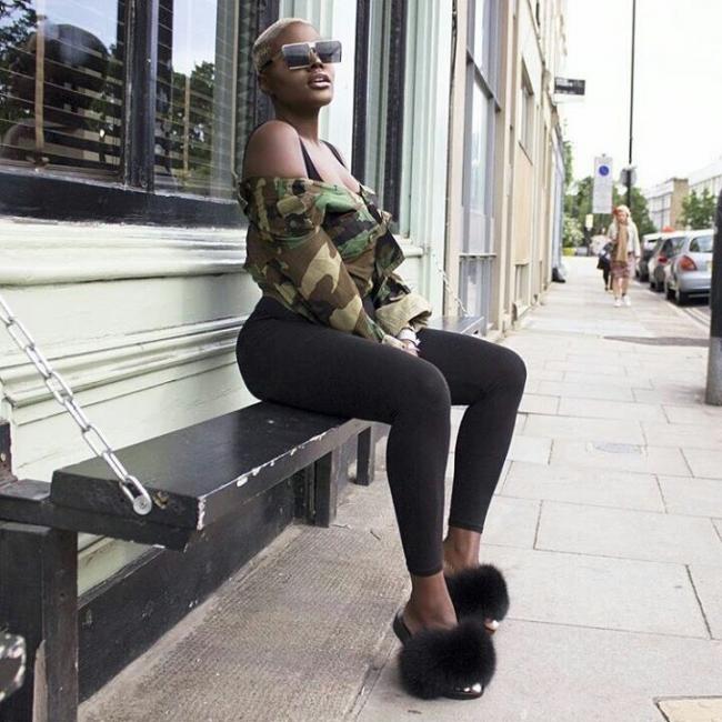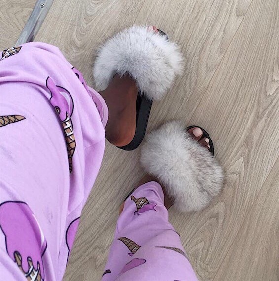 How cute is this? Pair the furry slides with pyjama pants. @chloekitembo