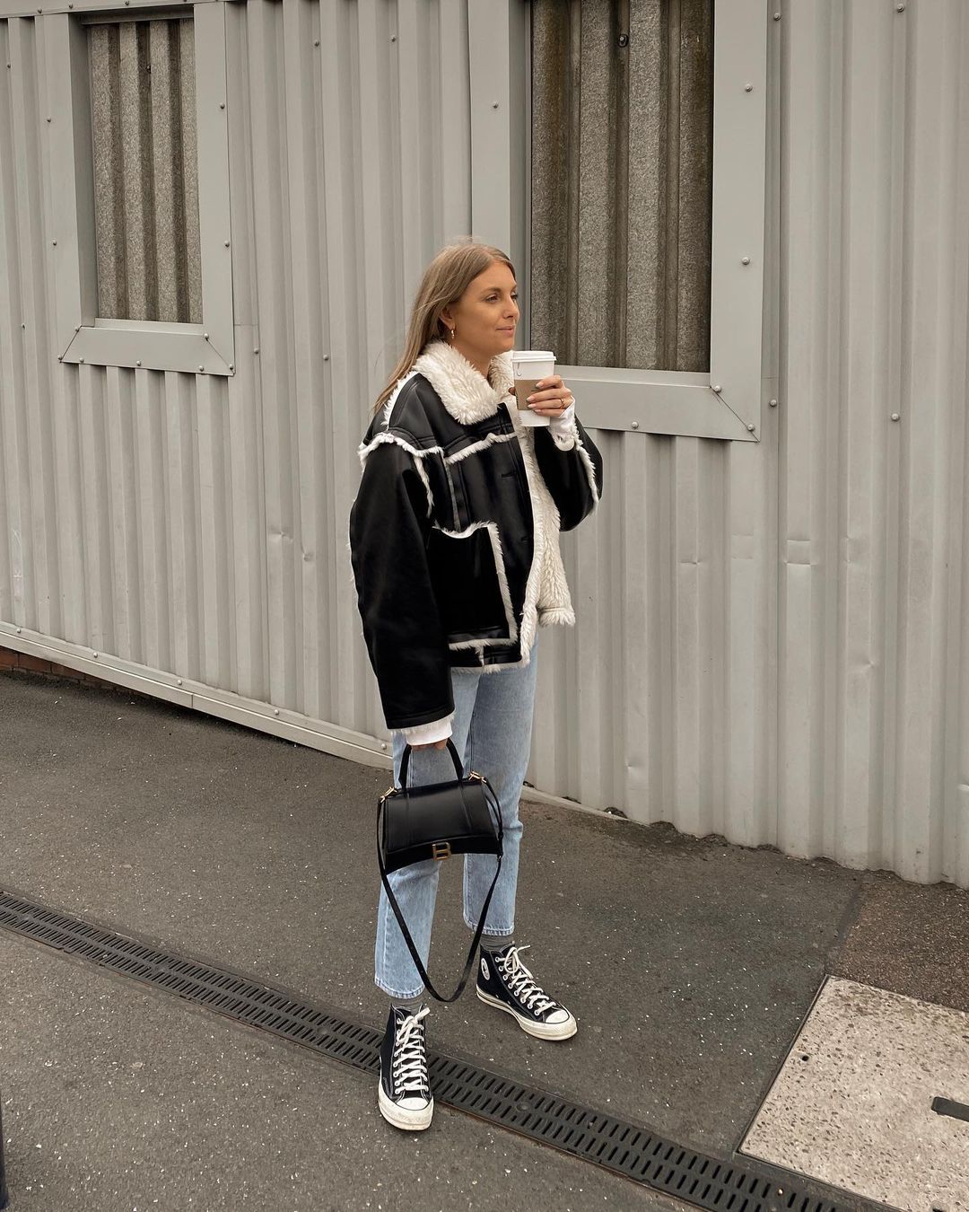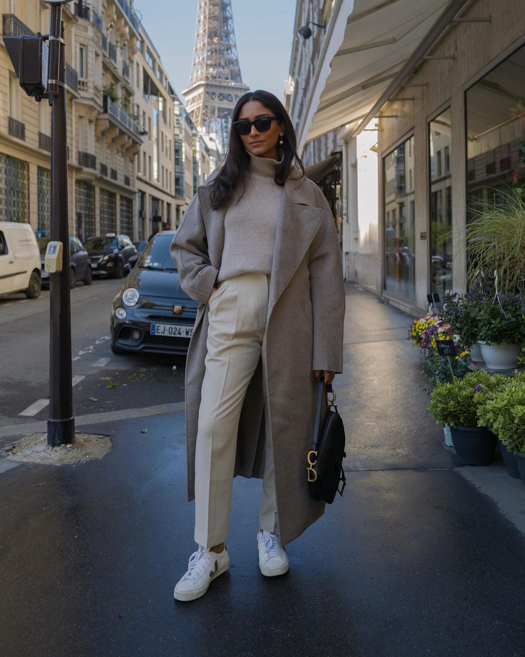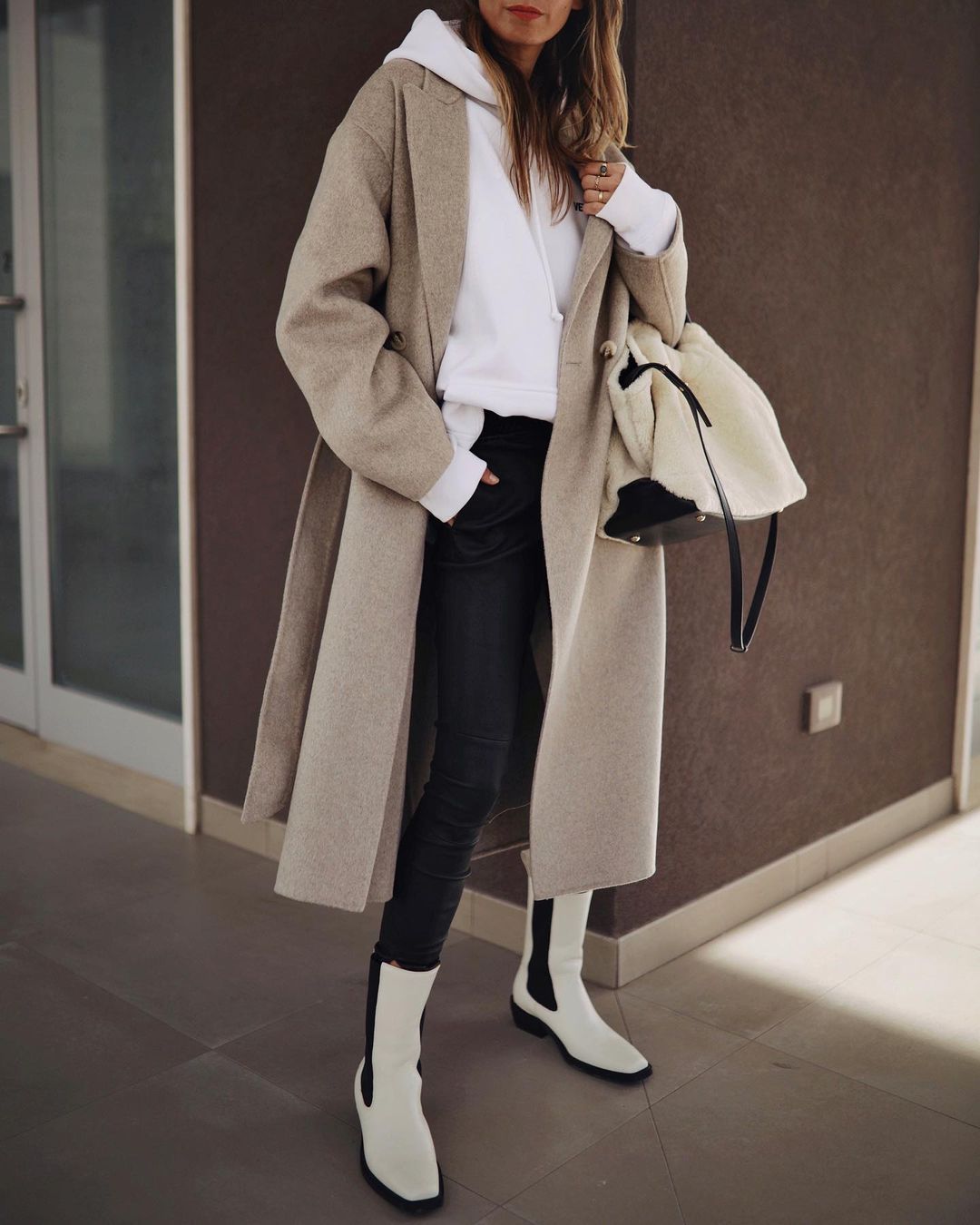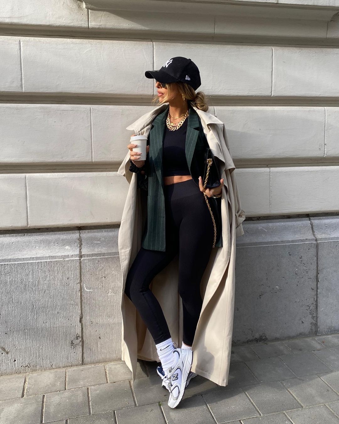 Oversized coat + legging + sneakers