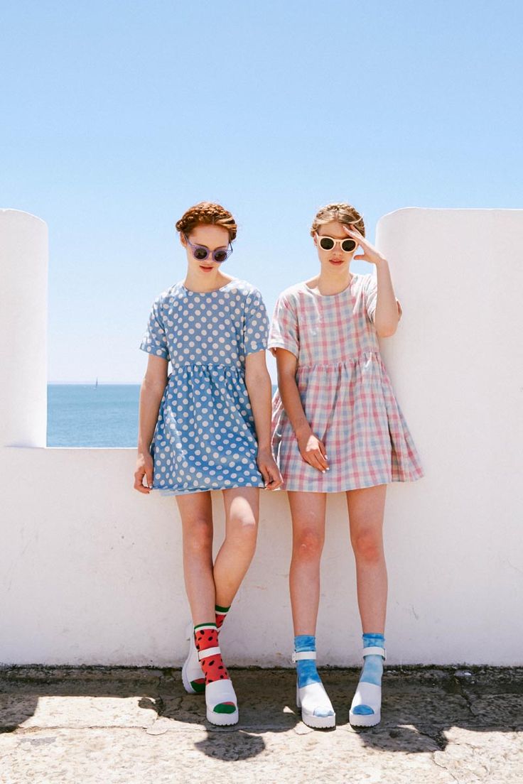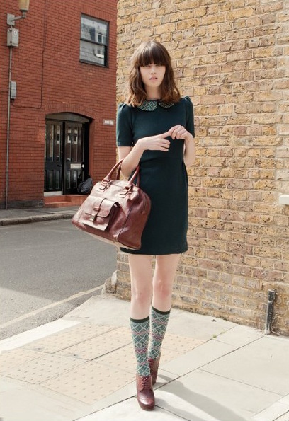 The fall silhouette is clean, the colors are deep, and the design accents are clever. The socks, however, remain high on the leg and add quirk to a classic and cool loafers.