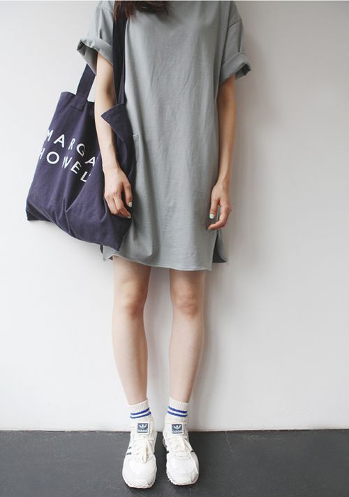 The athletic staple actually has much more potential, as seen in this relaxed yet polished getup of a crisp button-up, boyfriend jeans, and sleek slip on sneakers. The neckerchief acts as yet another small accessory that makes a big impact.