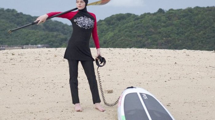 After a photo of her holding the Koran, now Mean Girl’s star is spotted wearing a burkini while at the beach in Phuket, Thailand. The photos, obtained by the Daily Mail, were apparently staged taken last week, and feature the actress covered from head to toe, modeling the style that designer Aheda Zanetti came up with to give women who need to retain their modesty for religious reasons or otherwise the chance to go swimming regardless.