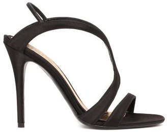 Silk satin evening sandal with symmetrical circular straps, a skinny heel and elastic at heel. Material: Textile fibers. $570. Get them!