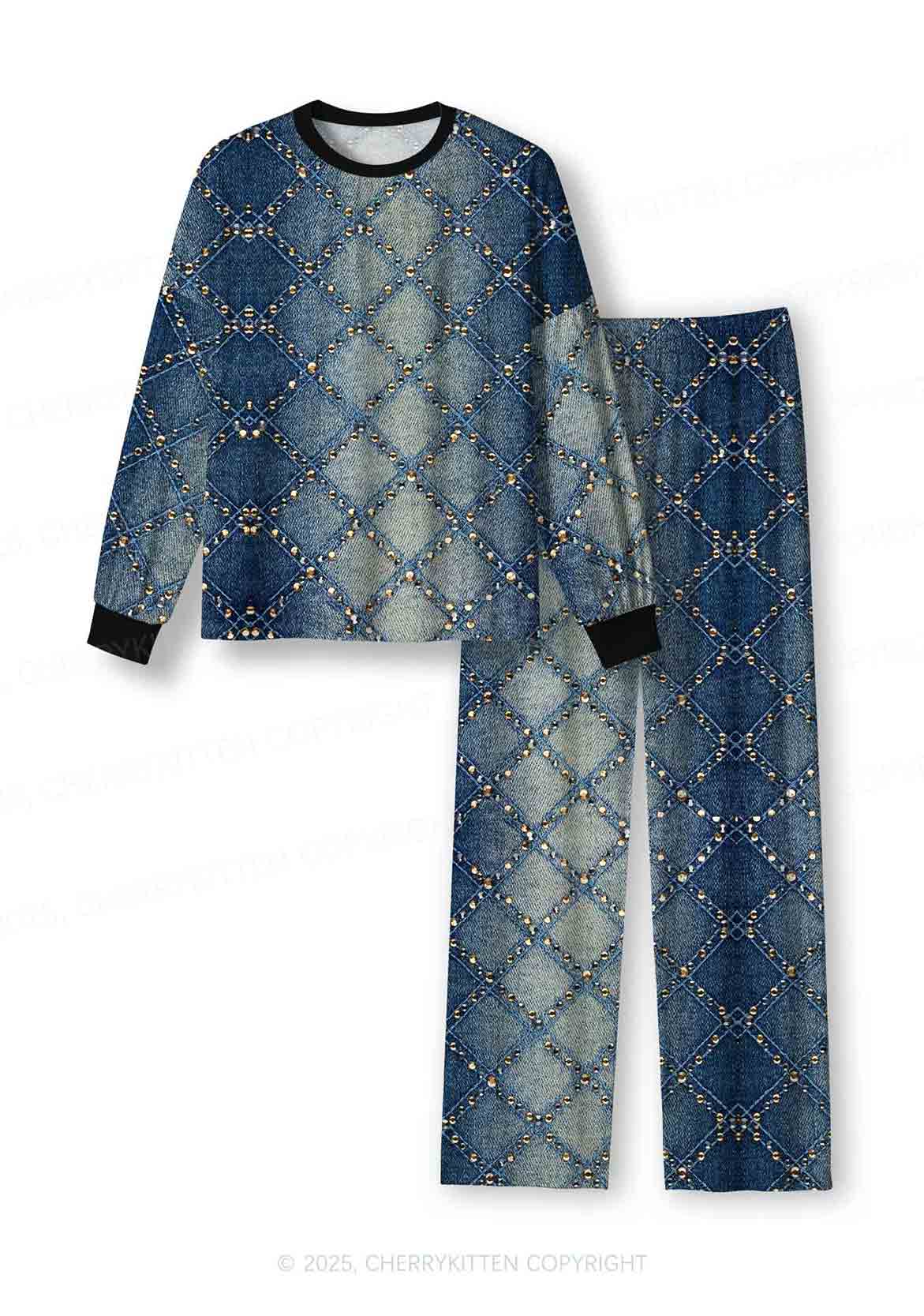 Denim Sparkle Y2K Print Long Sleeve Pajama Set