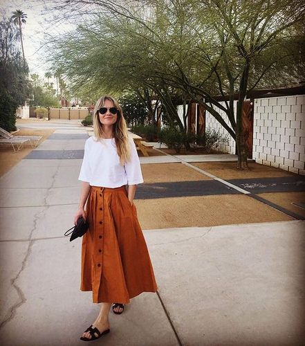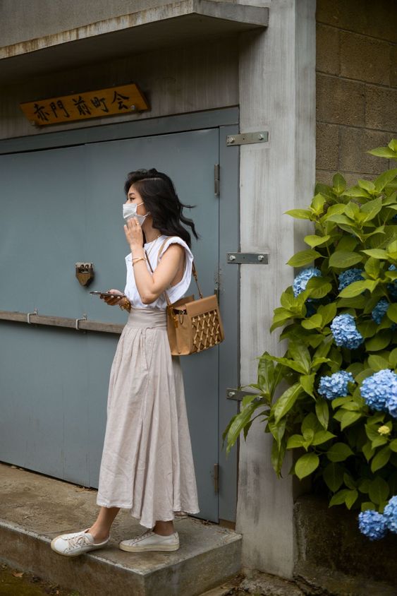 To look extremely youthful and casual, it’s about time to bring out a linen skirts. For the shoes, you can wear green heeled sandals to match with the skirt perfectly. Wear a nifty red leather shoulder bag to add a lovely touch to the look.