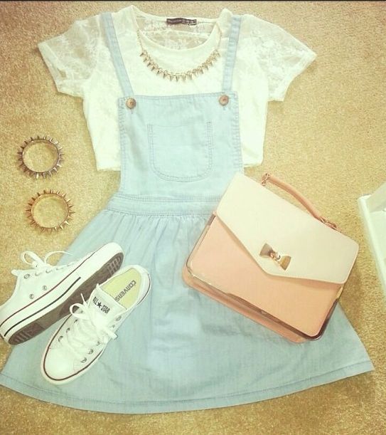 Pinafore mint colors like light green, light blue, or pink pastel fits really your time hanging out with friends. Try to solid–match with long–matching sweater, so that the appearance of a touch of mint–mu increasingly felt. Do not forget to put on your favorite necklace, yes!